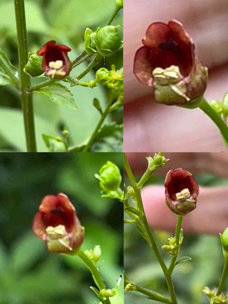暗紅紫色の花は名前の通り小さな壺型で、たっぷりと密を貯められるようになって