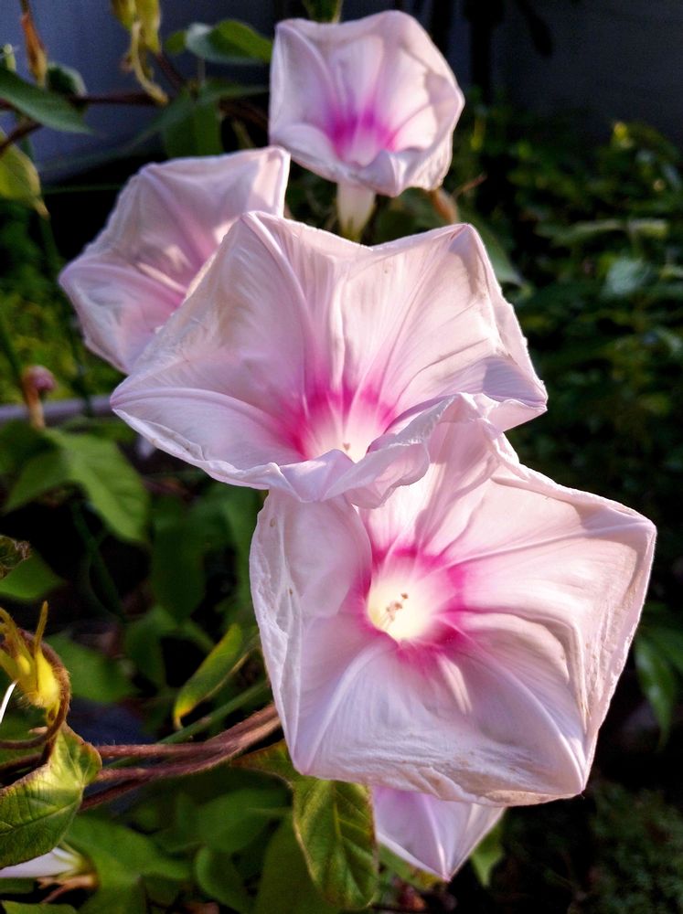 宇宙飛行士山崎さんと一緒に宇宙を旅してきた朝顔さんの子孫ですね~💦夕方まで咲いているなんて凄い!