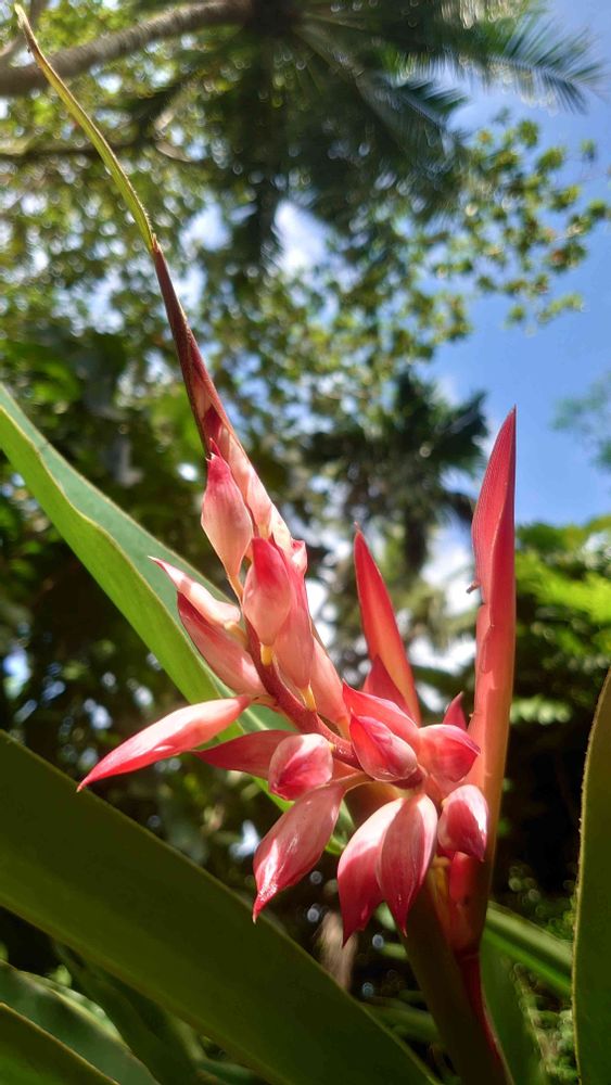 鞘から出たばかりの月桃がピンクです。💗