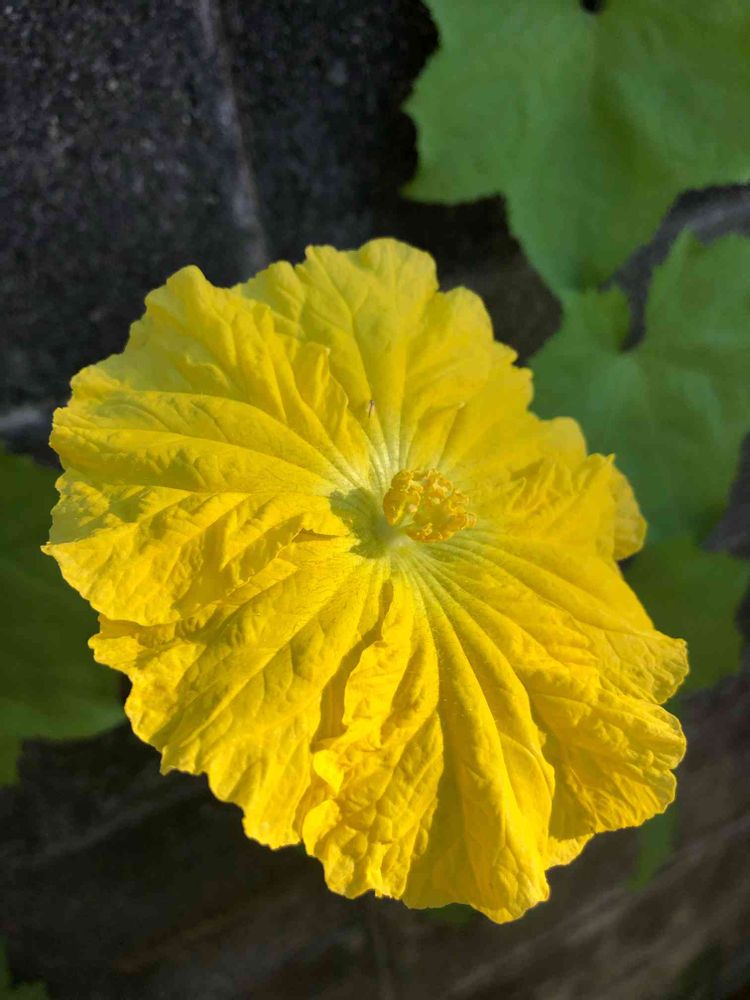 やっと咲いたヘチマ の花。直径8cmくらい。大きな花です🌼✨