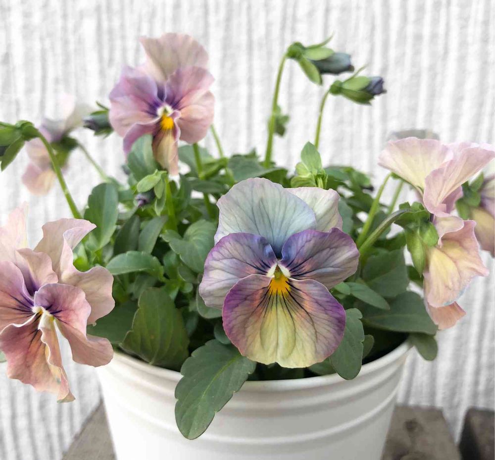 春になるとやっぱり ビオラが欲しくなります🎵 ニュアンスカラーのカワイイ子を見つけたので 我が家へお迎えしました😊