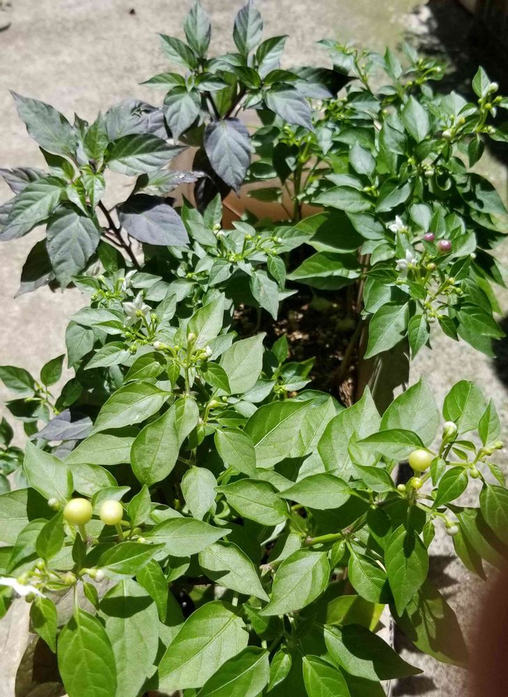 黒い葉っぱの黒と赤の実🖤❤️唐辛子