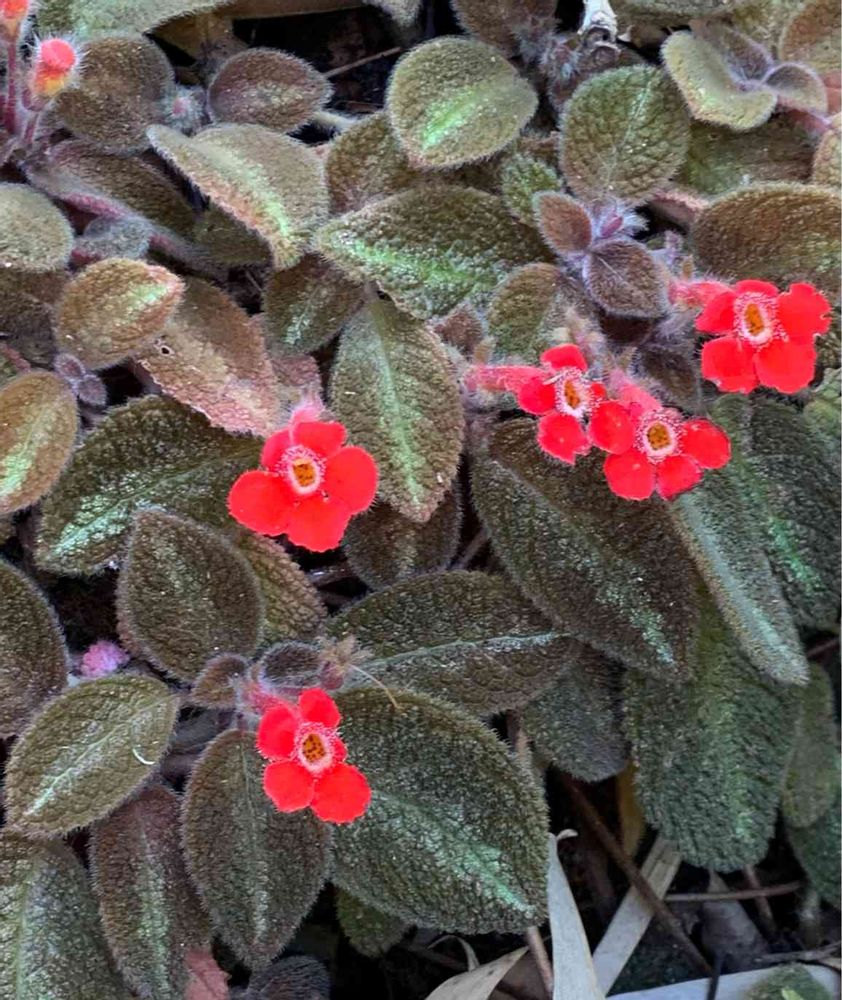 森の散歩道で咲いてる小さな赤い花、耐寒性は無いみたいです🧐