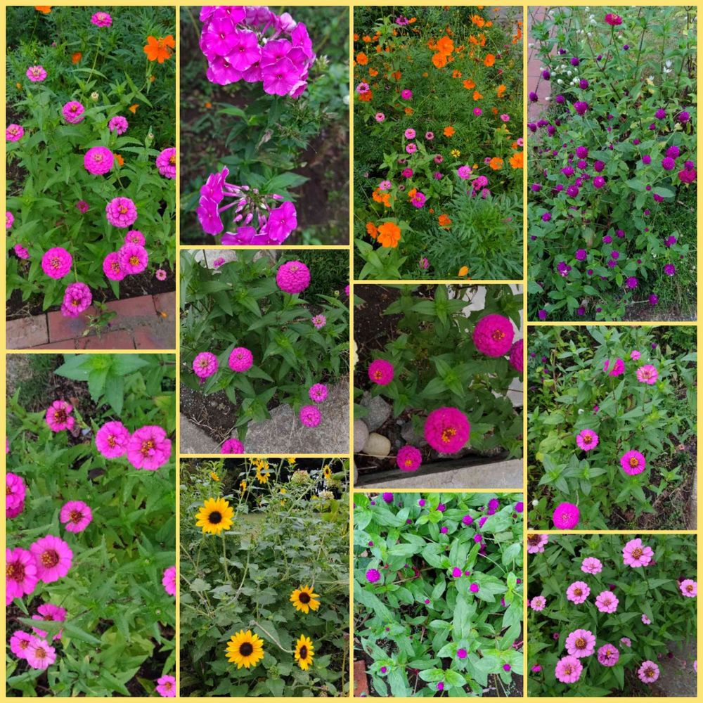 今朝は、庭のお花畑を写真にとって、コラージュしました🎨