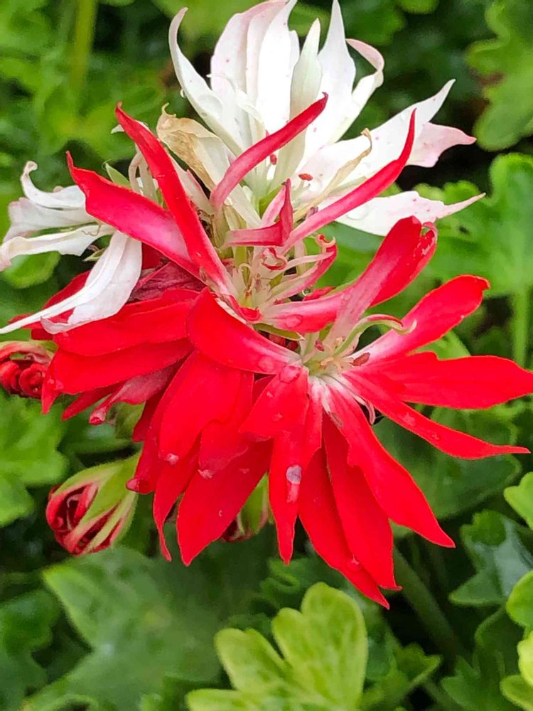 変わり咲きのゼラニウムさん❤️🤍名前が分からなくて😅👀