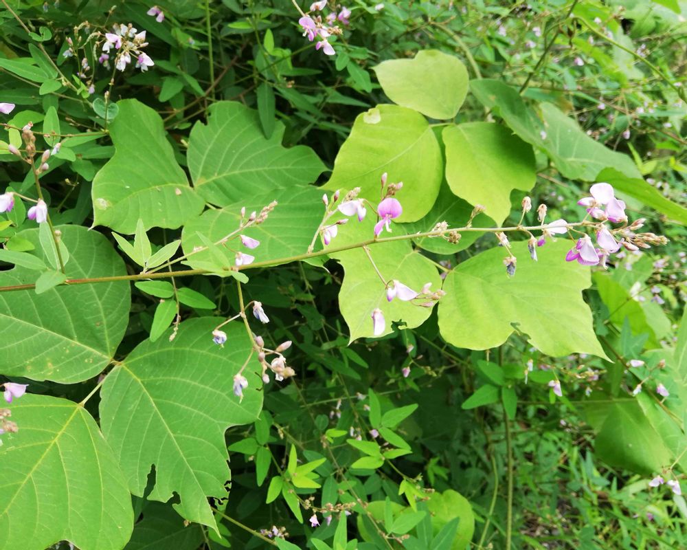 クズの葉に被さるように枝を伸ばしたアレチヌスビトハギ。埼玉県環境科学国際センター(加須市) 2022-09-03