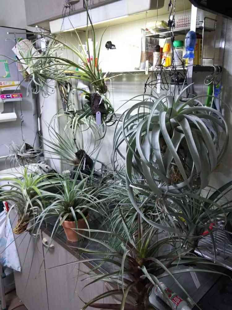 ウスネオイデスと共にベランダに出していたチランジアですが、雨が降りだしたので慌てて室内に取り込みました。