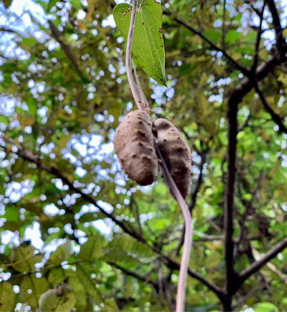 ウォーキング🏃中にふと見上げると、目の前に大っきな自然薯のムカゴ‼️
