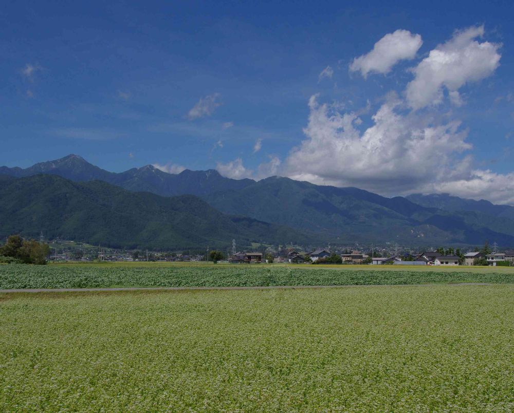 ソバ畑のバックに常念岳が見えたのでパシャリΣp📷ω・´)