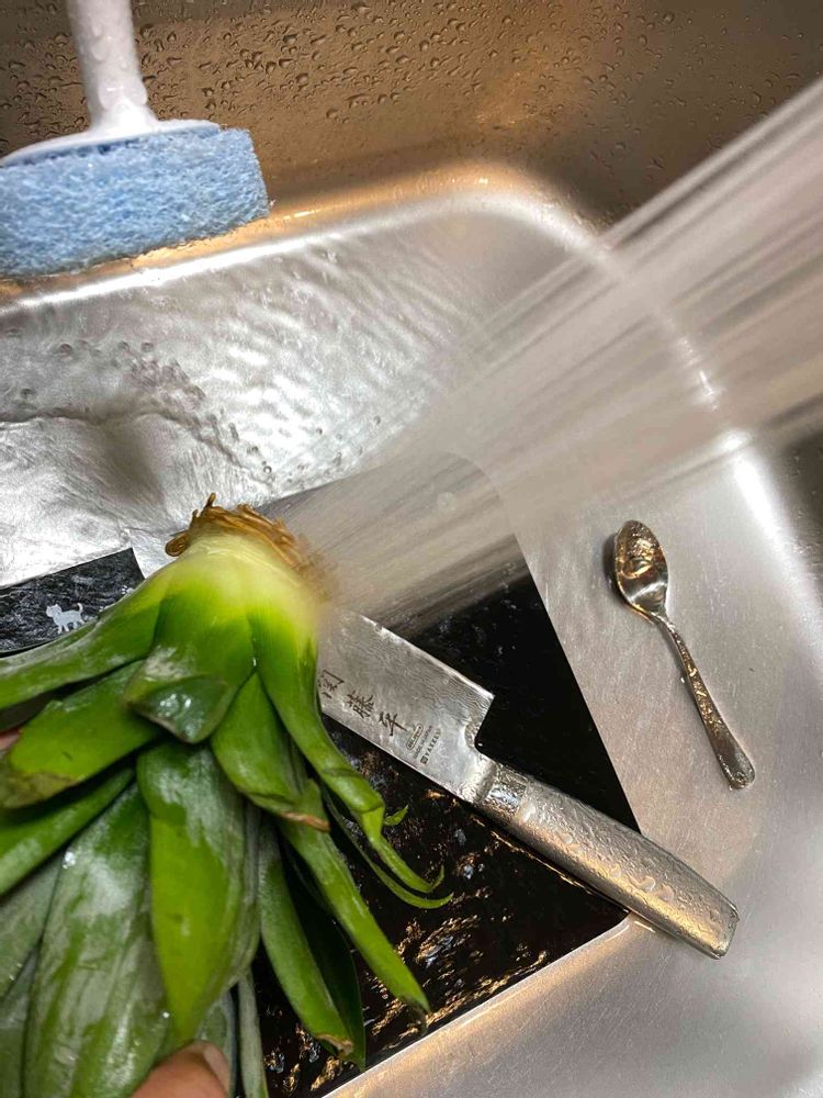 虫や汚れを取るのに水に全体を浸し時間を置いて