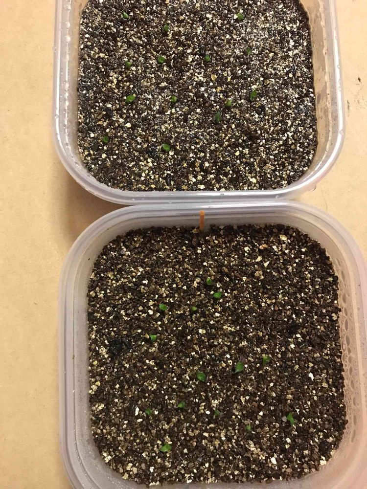 パネルヒーターが小さいから、まず爪楊枝刺してある方に使用して、全部発芽してから次のタッパーに使用したんですが、次のタッパーは更に1週間掛かりました。