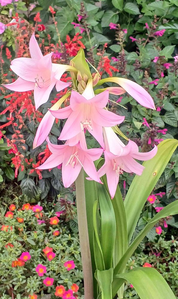 🌿💗アマクリナムは世界の熱帯から亜熱帯に約160種が分布する大型の球根植物です 。クリナム・ムーレイ(ハマユウの仲間)とアマリリス・ベラドンナの 交配種 です 綺麗なピンクの花色でひとつの 花茎に多数の花をつけ、暑い夏にも元気よく咲き誇ります。