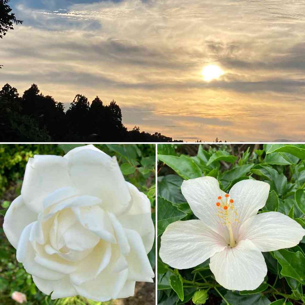 素敵な夕焼けに白いお花のpic素敵ですね🤗💕