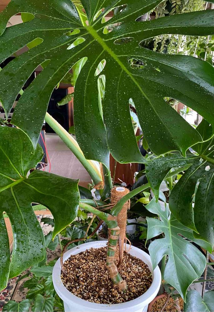 少し窓を開けてたら、凄く風が強かっらしく大きくな葉っぱのモンステラ・デリさんが根元から倒れた😱😱