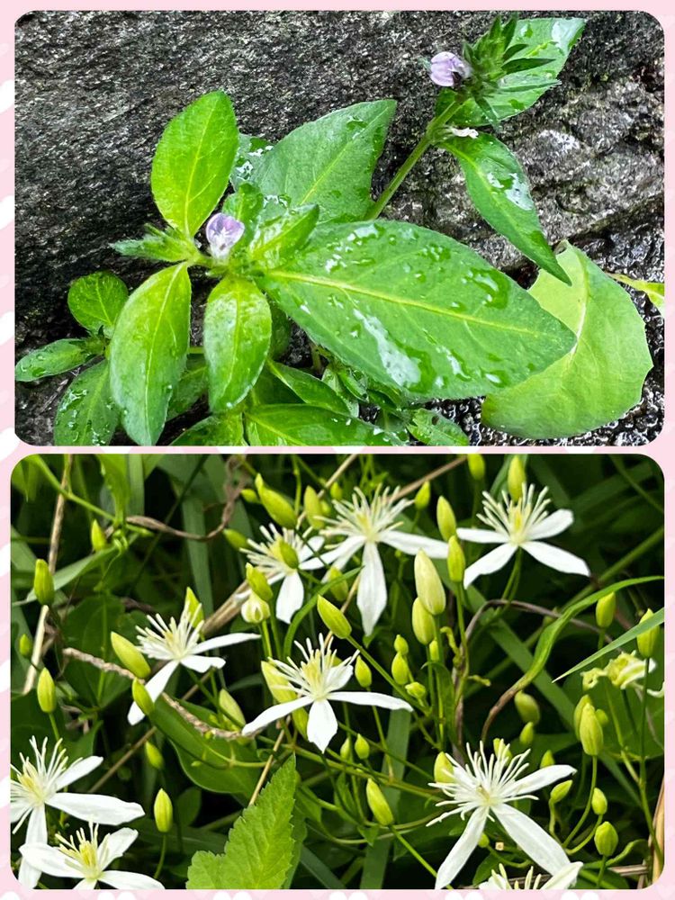 坂道の脇に小さな花🌸調べたらキツネノマゴ😳の様です?仙人草は御近所の土手に咲いて居ました😃🧚🏻♀️