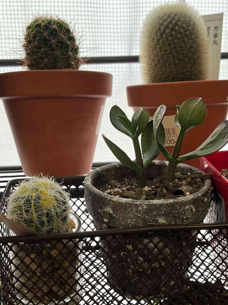 よく見ると微妙なちがいがあるサボちゃん達🌵🥗 不思議です。゚(¯ㅿ¯υ)゚。窓辺のサボちゃんたちの中でも、おチビᒼᑋªⁿ✿たちです*ᴗˬᴗ)⁾⁾⁾