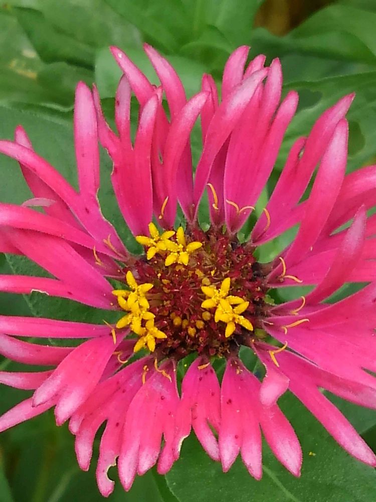 切り戻した百日草から こんな花びらの切り込みのお花が咲いています😃