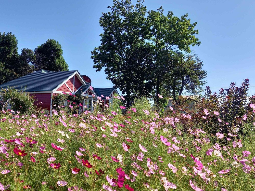 コスモスがたくさん咲いていて、秋らしいステキなお庭ですね~❣️😃