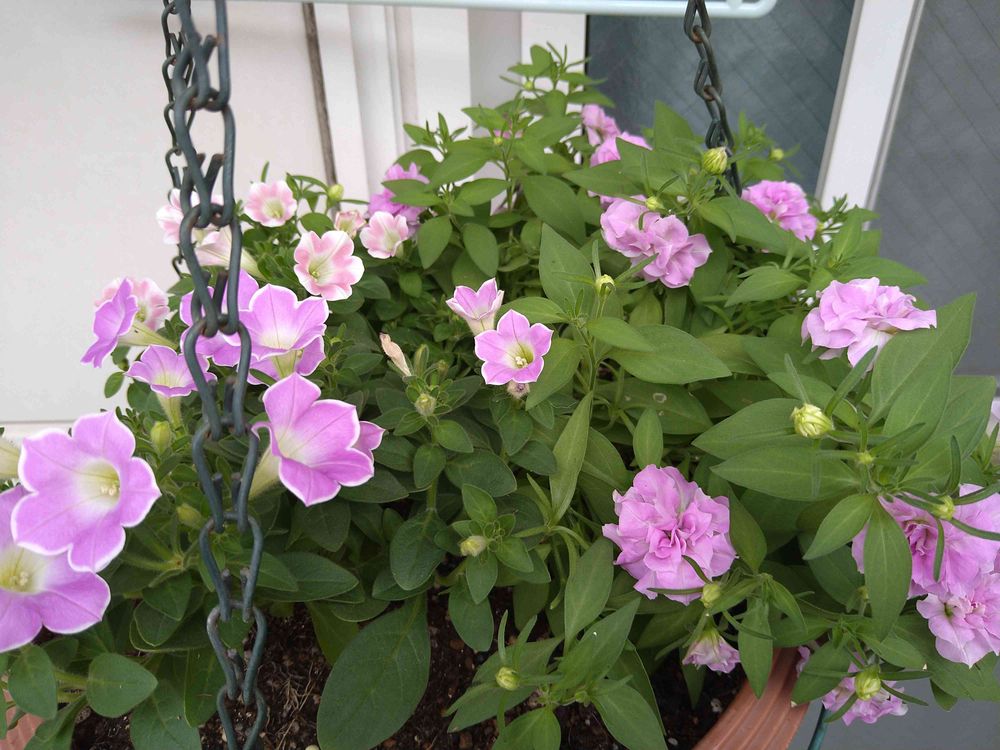 kumaluluさんのバルコニー/ベランダ,サフィニア ももいろハート,サフィニアアートいちごシェイクの投稿画像