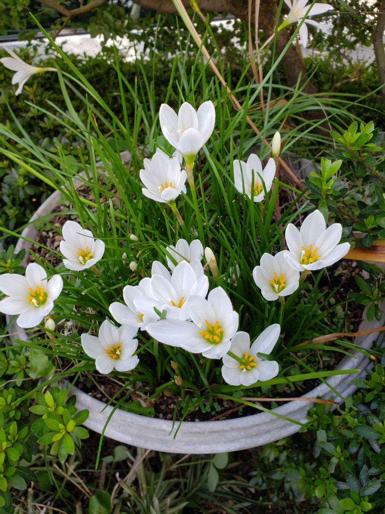 ゼフィランサスが小さな鉢にいっぱい満開になってました。