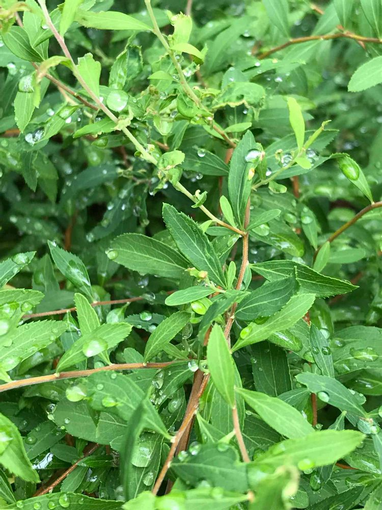 雪柳の葉にキラキラと雨の雫💧