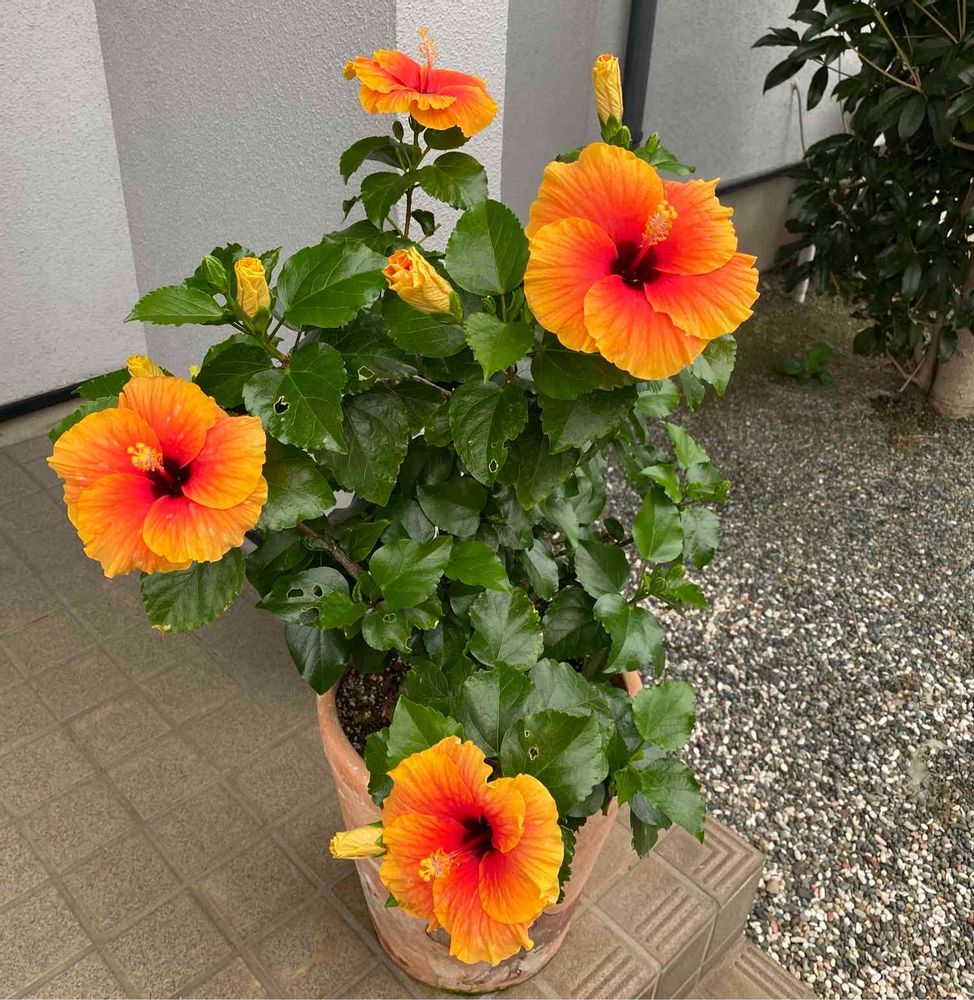ビタミンカラー💛❤️のハイビスカスの花が4つも一緒に咲いてると華やかで綺麗ですね🤗💕