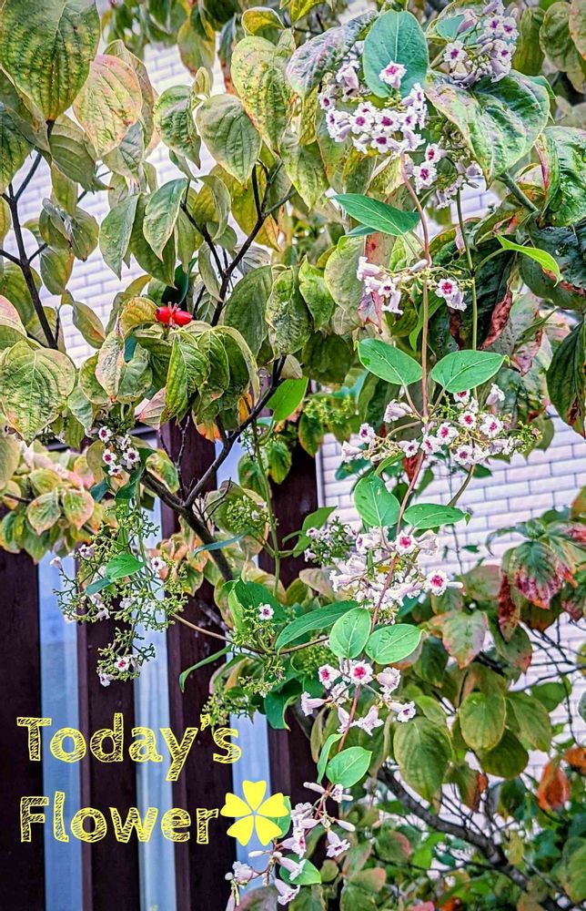 我が家の至る所で、可愛い花と可愛い実を付けていますෆෆ