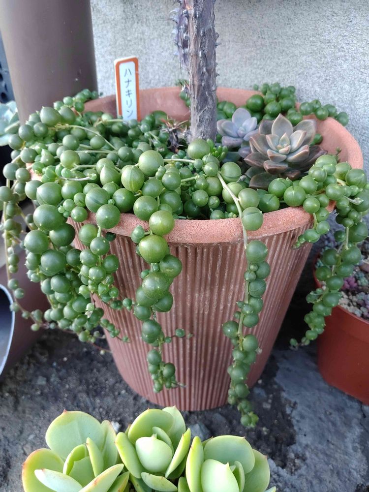 ハナキリンの株元が空いてたのでポイポイしてたら、立派なネックレスに育ってました😆