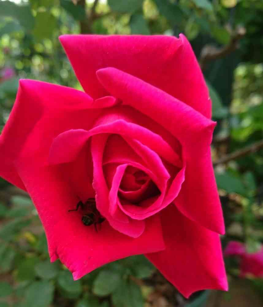 クリムゾングローリー🌹に蜂🐝が一夜の宿だったみたい(#^.^#)