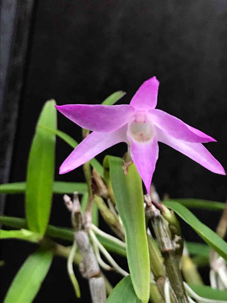 自然大好き派😘、兼園芸もやっています😅派です。今朝水遣りの際、セッコクの開花を見つけました😊。この鉢は水捌けが悪く高芽がいくつか出ている株で、その高芽に開花していました。手入れの悪さをセッコクから指摘されたようで恥ずかしいです😭。