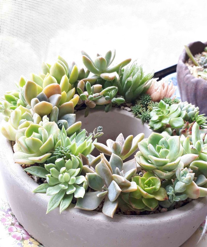 多肉との出会いは娘からの プレゼント🎁✨🌱✨ 少しずつ増えてきたので寄せ植え にも挑戦中💪 育てる楽しさ(ちょっと大変💦) 作る楽しさ💓 毎日、癒されてます😌