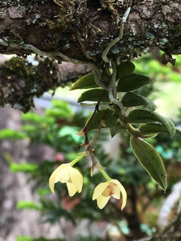 ありがとうございます✨我が家の庭の2本のイチイの木に着生しているのを最近発見してビックリ😆❣️他の方に教えて頂いたところでは、ランは種子が粉のようだから飛んできて着生したのではないかと。山がすぐそこなのであり得るかと。何ヶ所かでぷらぷらしています😆
