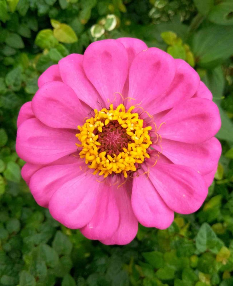 通りすがりに見かけました、とある駐車場の花壇に咲いていました百日草(ヒャクニチソウ)の花☺️