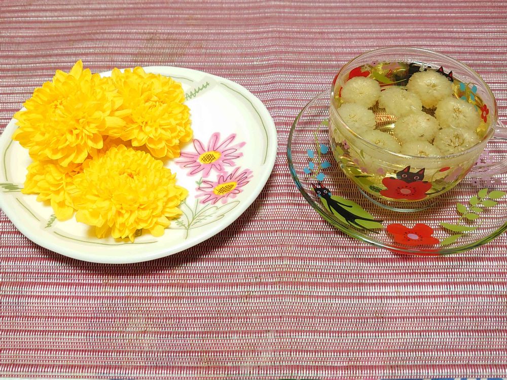 和室,食用菊(阿房宮),食用菊(抗白菊) 菊花茶の投稿画像