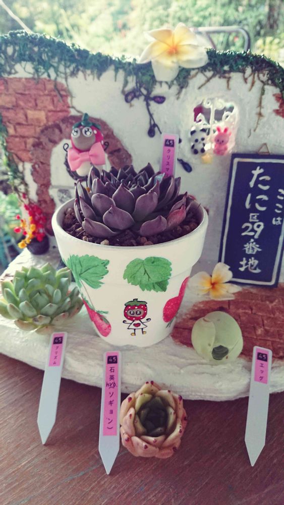 45さんの 素敵な多肉と🍓可愛いコラボ(*ゝω・)ノ♥