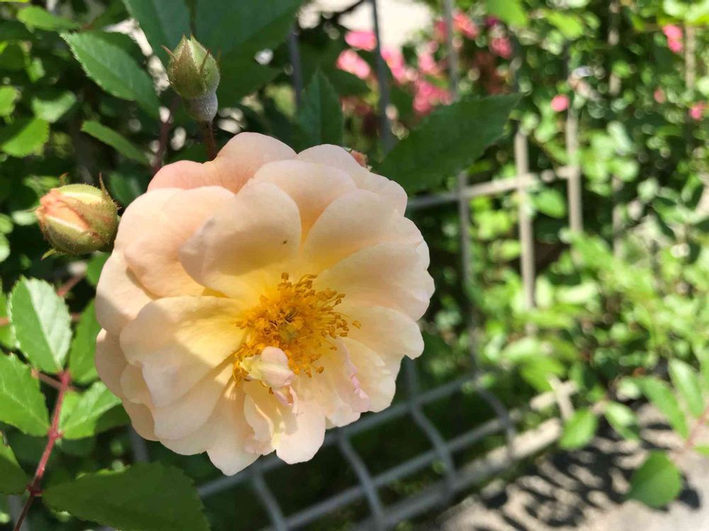 昨年は株が若いせいかほとんど咲かなかったつるバラが今年はたくさんのつぼみを付けてくれました✨