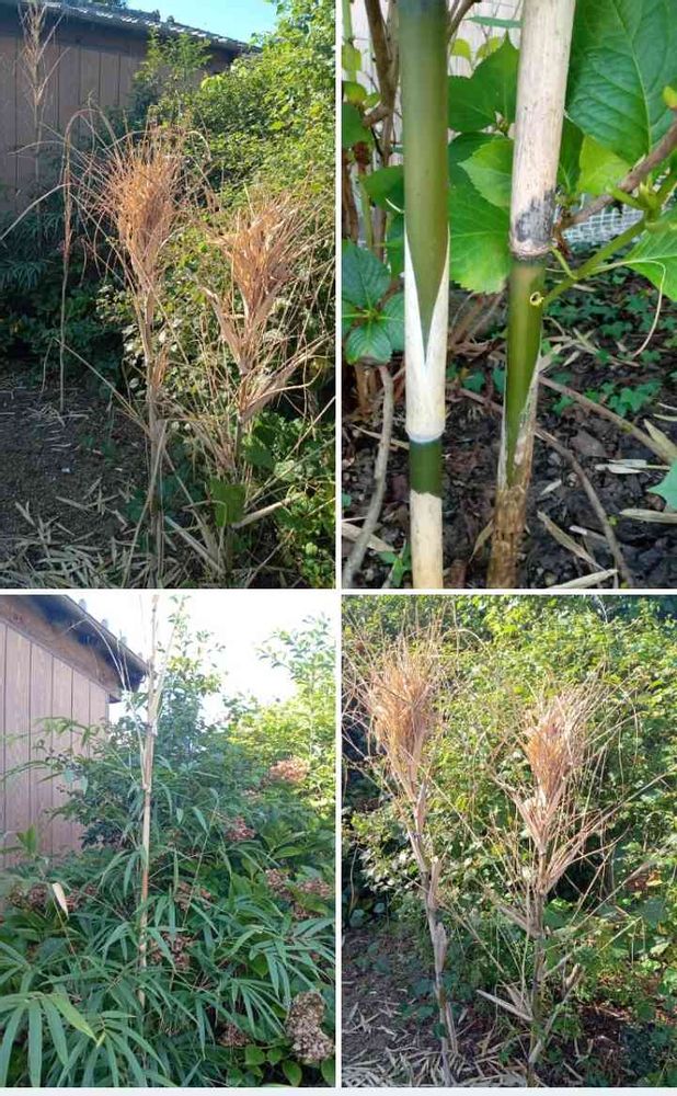 今年は4本🌱芽が出てきました 庭が竹に占領されると思い慌てて対策 全ての竹に穴を開け除草剤原液を注入 枯れたと思っていたら忘れられた一本があったのでまた穴あけそして注入完了 厄介者退治上手くいくかな🤔