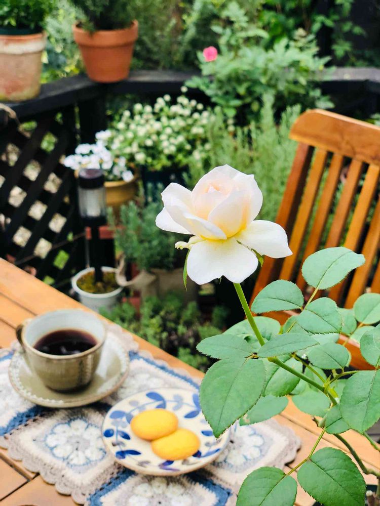 かわいいバラにお気に入りのカップとお菓子で、癒しの時間になりました〜🥰