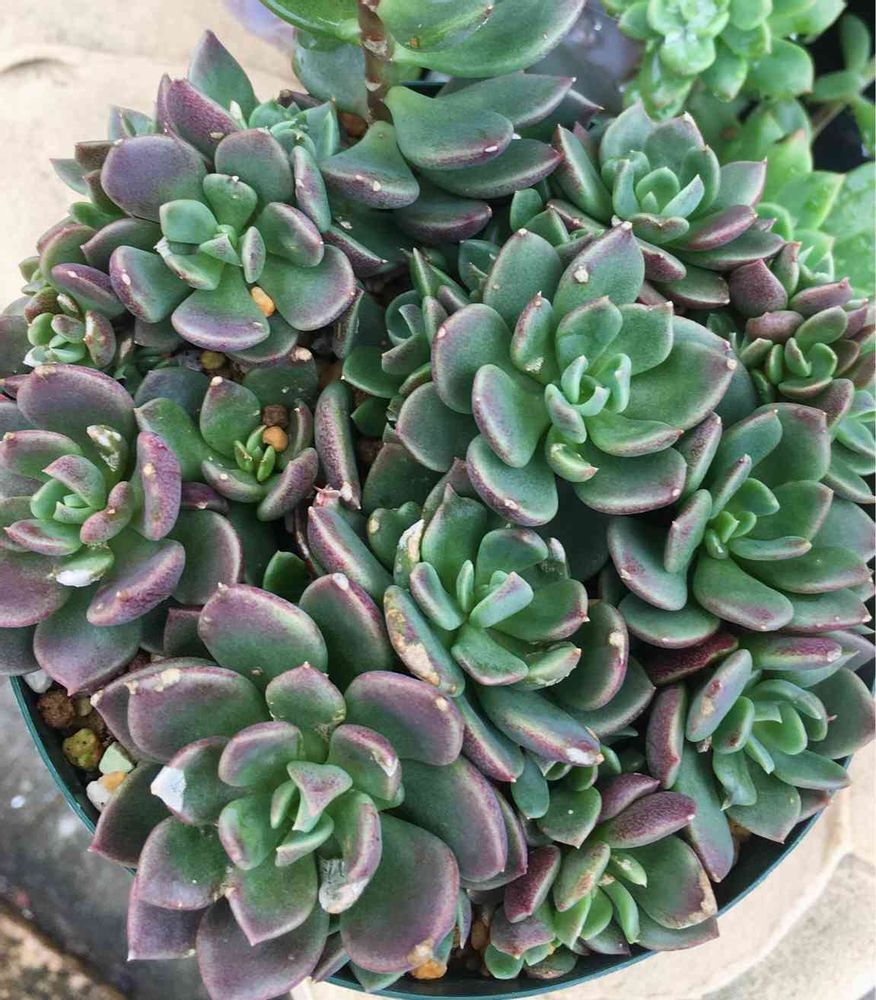 この子は親株の元で育った葉挿しっ子達を夏に寄せて丼にしたものです。