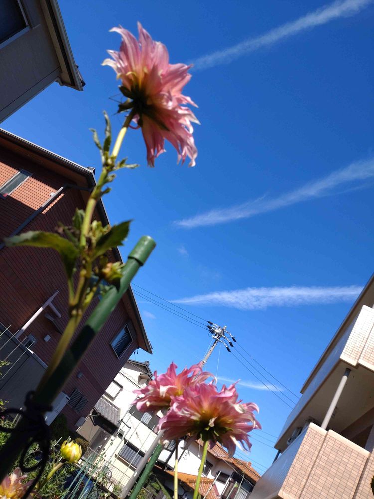 空を写すとダリアが綺麗に撮れず、でも、この空が撮りたかったのです。