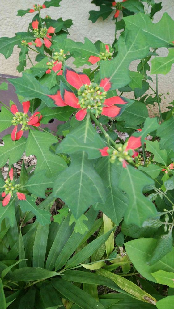 大家さんの庭にサマーポインセチア(猩々草)が咲いてました。