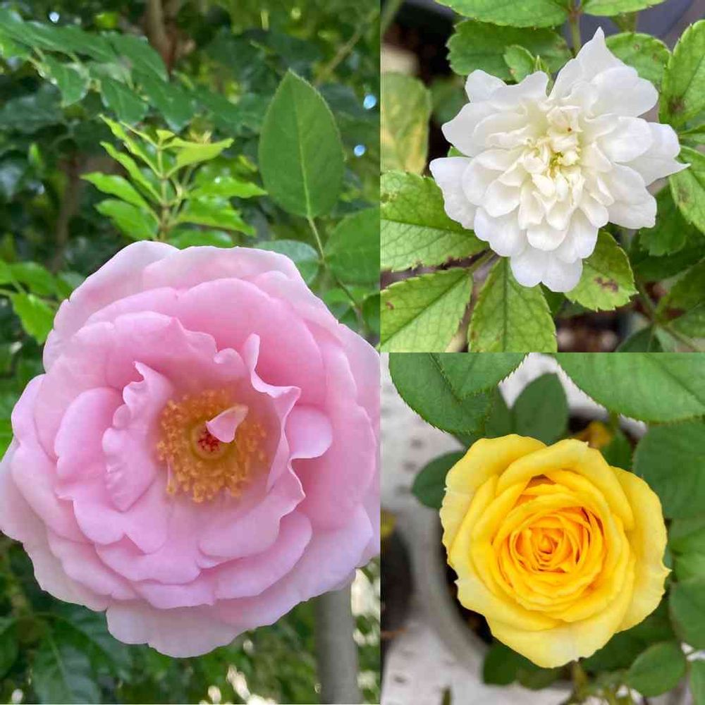 白と黄色はミニ薔薇です。