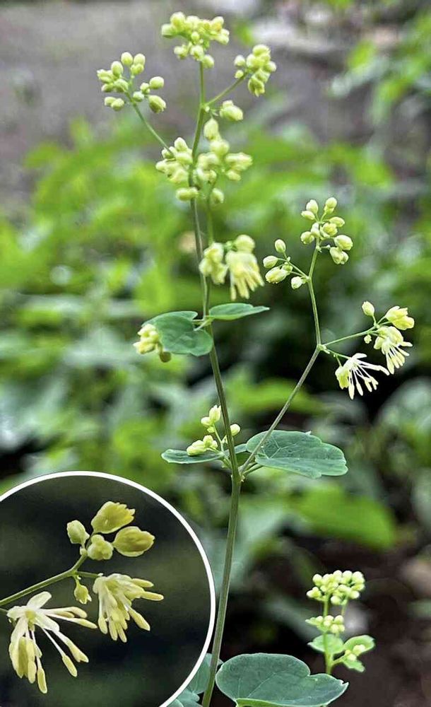 2mmほどの小さな蕾がパカーンとしました。庭にいるタリクトラムデラバイにとても似ているこの薄黄色のお花がとても可愛らしい。画像検索してみると“アキカラマツ”と出ました。