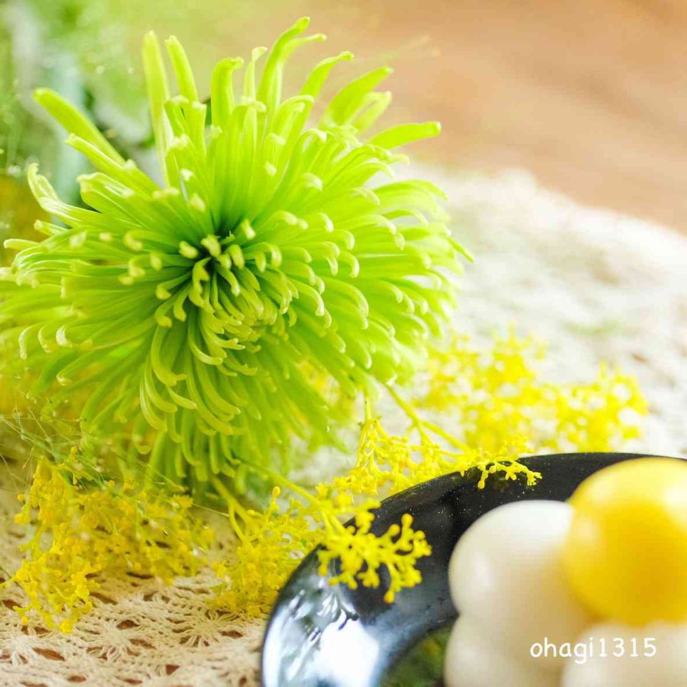 このお花は供え物の団子に手を伸ばしてるように見えるのんは僕だけかしら?