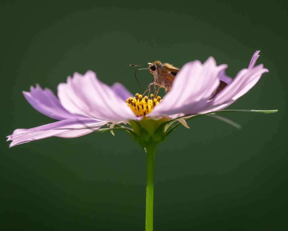 花壇のコスモスが満開になりました。セセリチョウがさっそく吸蜜にやってきていました。
