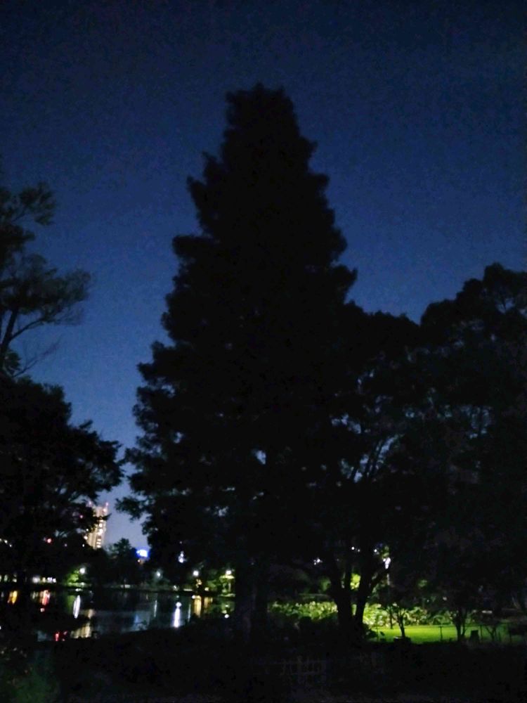 紺碧の夜空に浮かぶ木のシルエット🌌🌲