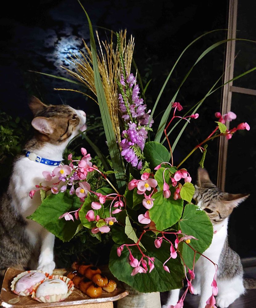 ニャンコもお月見だね🐱🐱🌕️🌾