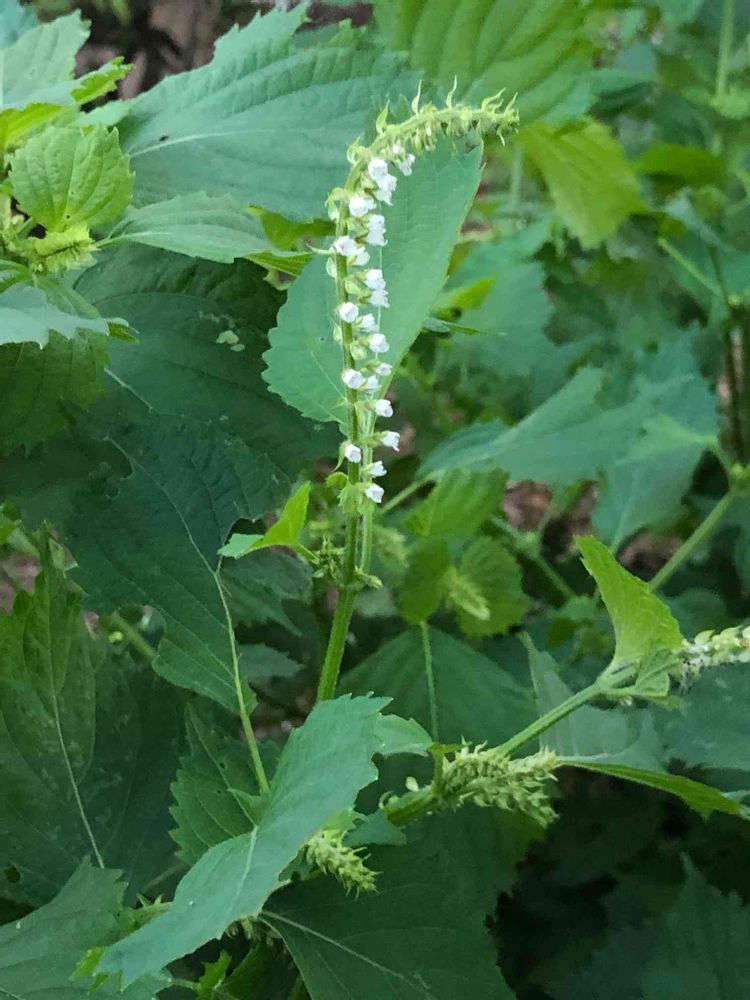裏庭にここぞとばかりに風船カズラと競い合って大葉青紫蘇が広がって沢山花を咲かせています😊💕