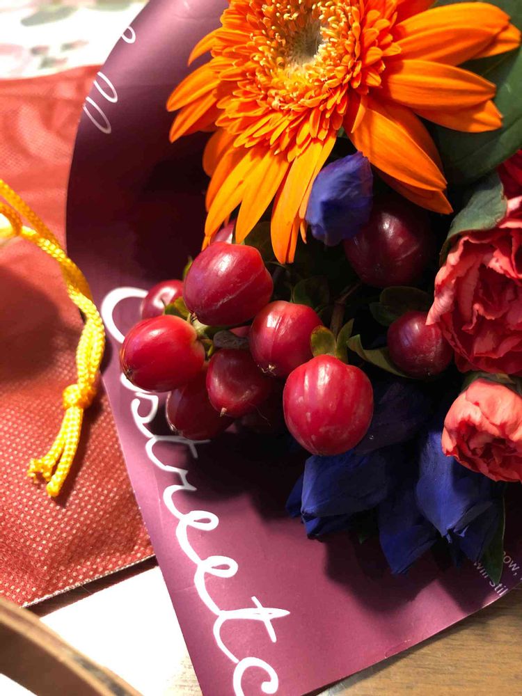誕生日のお祝いに小さな花束をいただきました。ヒペリカムかもしれませんが、おおつぶです。なんという花の実でしょうか?