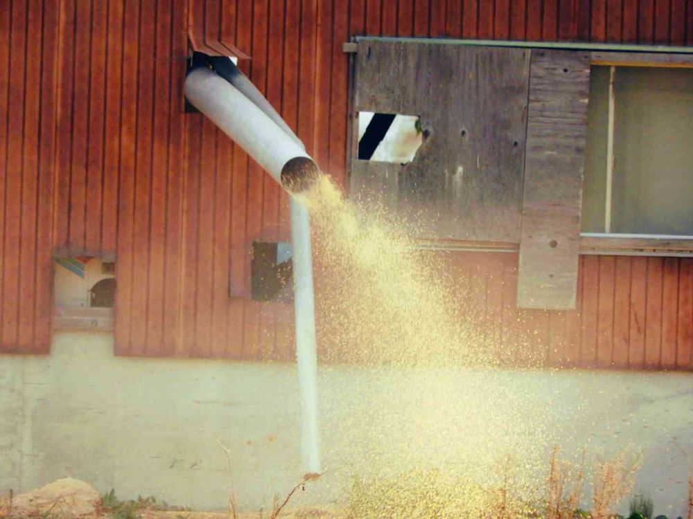 散歩の通り道で、精米中らしく、籾殻が外に排出されていました。